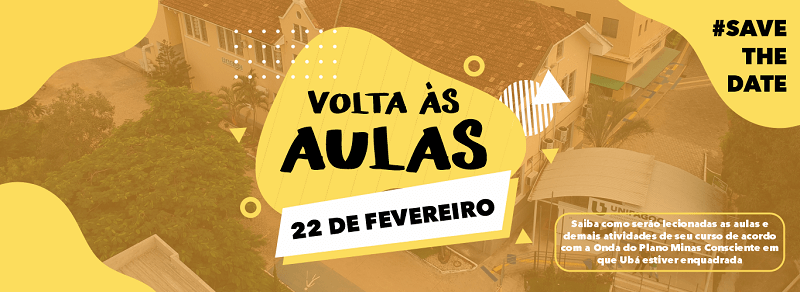 ONDA VERMELHA: Caso Ubá esteja na Onda Vermelha no próximo dia 22 de fevereiro, as aulas teórico-cognitivas de todos os cursos terão início de forma 100% remota. Já as aulas práticas serão realizadas presencialmente no Campus, bem como as provas. O calendário pode ser conferido no SIGA ou com a Direção de cada curso.